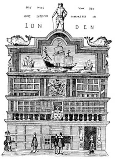 Здание Ост-Индской Компании в Лондоне. Старинная голландская гравюра.