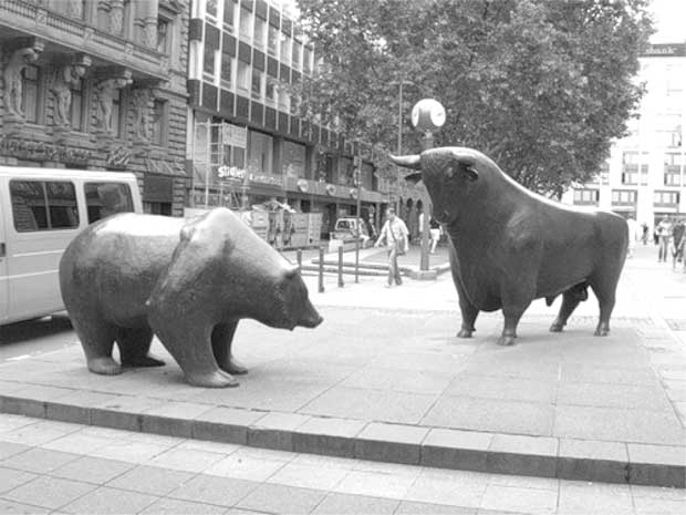 Именно там появились самые известные слова биржевого жаргона – «быки» и «медведи». «Медведями» называли игроков на понижение, исходя из пословицы «продавать шкуру неубитого медведя». Происхождение термина «быки» имеет следующую историю: лондонские брокеры того времени любили развлекаться, наблюдая за боями медведей и быков, которые проводились в центре Сити на Темзе, то есть бык ассоциировался с естественным противником медведя. Названия «бык» и «медведь» прижились и получили официальный статус: так, определение слова «бык» для биржевых игроков встречается с 1714 года в оксфордском словаре. В 1886 г. в «Нью-Йорк таймс» впервые можно было прочитать: «Биржа стала местом борьбы, как никогда раньше. Быки и медведи стояли в полной растерянности друг против друга. Медведи оказались сильнее».