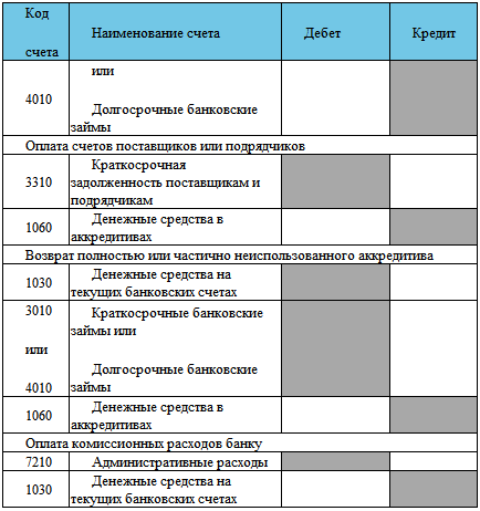 Основные бухгалтерские проводки по учету денежных средств в депозитах и аккредитивах: