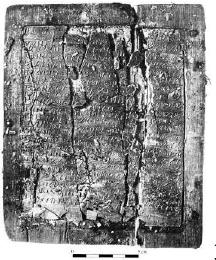 Цер учетного характера не найдено. Но одна из них (рис. 3.2) с остатками текста по бортику (…кланяю(сь)…язъ тиунъ)[7] свидетельствует о записях и отчетах должностных лиц (тиуны) в церах.
