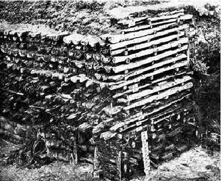 Берестяные документы в Великом Новгороде находят между плахами мостовых, но, в основном, между мостовыми (рис. 8), на разной глубине (Людин конец – 6 м; Неревский – 5 м; Славенский – 9 м). Тротуары настилались слоями из мощных сосновых плах, уложенных на длинные лаги, и перестилались через каждые 20–25 лет. Древнейшие из них относятся к X в., самые поздние – к XV в. Великая улицасодержала 28 ярусов, Черницына улица – 29 ярусов (рис. 9). Сложность возведения мостовых была вызвана слабостью грунта, но эта особенность образовала для археологов культурные слои раскопок: "В почве Новгорода сохраняются не только все древние предметы, но и исторические взаимосвязи между ними"[14] (рис. 10). Средняя скорость нарастания культурного слоя в Новгороде составляла по оценке археологов около 1 см ежегодно. Вряд ли новгородцы предполагали, что выброшенные ими грамоты образовали культурные слои, которые с трепетом и заинтересованностью будут исследовать археологи, историки, лингвисты, экономисты. Да, у них не было бумаги, письменных ручек, калькуляторов, компьютеров для записей операций, но они с пониманием значимости решали эти проблемы доступными им средствами.