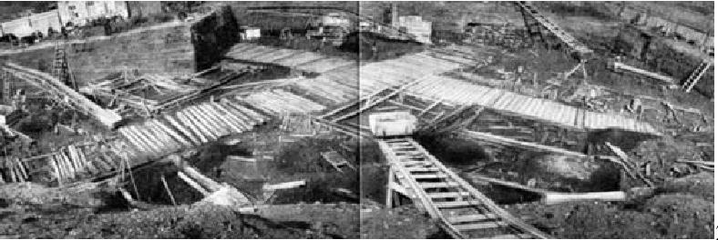 Рис. 10. Великий Новгород. Остатки мостовых: 10.1. Фрагмент раскопа Ярославова Дворища (1207 г.). [А. В. Арциховский. Раскопки на Славне в Новгороде, с. 156]; 10.2. Перекресток Великой и Холопьей улиц (XIII–XIV вв.).