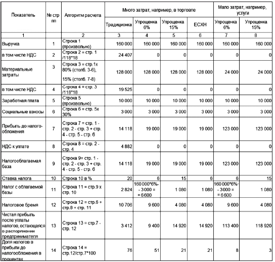 Для начинающих предпринимателей традиционка невыгодна. Посмотрите на таблицу расчета налогов. В строке 14 указана доля налогов в прибыли до налогообложения. В традиционке она составляет 76 %, в других – от 3 до 51 %.