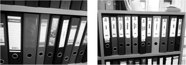 1. Отсутствие надписей на папках с документами или папок вообще нет.
