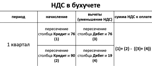 Сумма налога, который вы должны уплатить в течение 3 месяцев квартала, следующего за отчетным, и которая отражена в декларации по НДС за отчетный квартал, должна быть такой (заполняем четвертый столбец): разница между суммами первой и второй строк второго столбца и суммами первой и второй строк третьего столбца.
