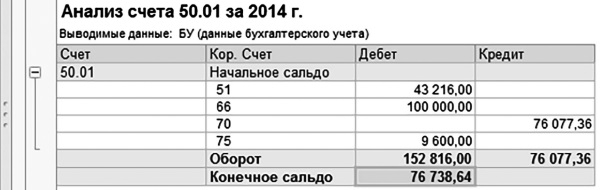 7. Щелкните по счету 50.01 левой кнопкой мыши. В открывшемся окне появятся на выбор 5 отчетов, выберите «Анализ счета».