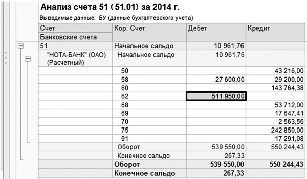 Щелкните по счету 51 (51.01) левой кнопкой мыши. В открывшемся окне появятся на выбор 5 отчетов, выберите «Анализ счета».