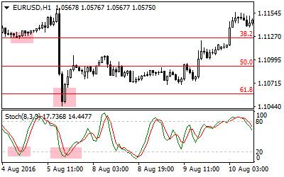 Фибо уровни 38.2, 50, 61.8 являются сильными уровнями поддержки и сопротивления, особенно в паре с другими индикаторами, например Stochastic, RSI, MFI, когда дополнительный индикатор входит в зону перекупленности/перепроданности.
