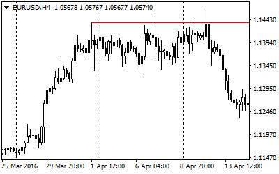 Рис. 19. Уровни построенные ранее являются сильным сопротивлением и поддержкой