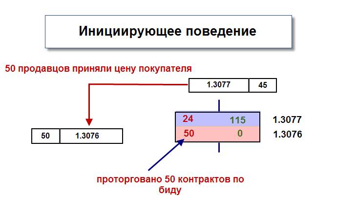 Например, 50 продавцов соглашаются на предложение покупателя и заливают бид, то в “котировочном стакане” будет отражаться 50 контрактов по биду по цене 1.3076 (см. рис. 10).