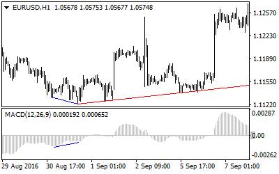 Если начертить трендовую линию по двум вершинам/низинам, где самая верхняя/нижняя вершина это максимум/минимум дивергенции (рис. 10 синяя линия), то если нарисовать трендовую по двум последующим вершинам (после дивергенции, красная линия), то можно ожидать третье прикосновение к этой линии (рис. 10, красная линия).