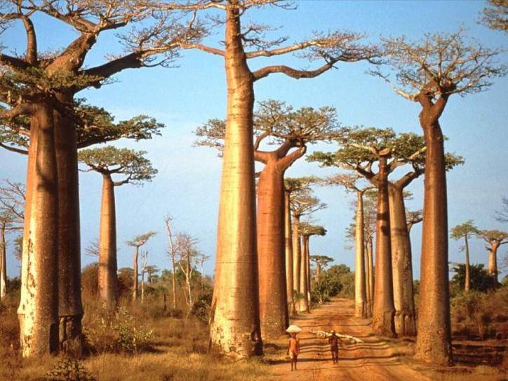Сухие леса западного Мадагаскара являются одними из самых богатых тропических сухих лесов в мире и характеризуются очень высокой степенью эндемизма местных растений и животных на уровне видов, родов и семей. К ним, в частности, относятся некоторые виды лемуров и семь уникальных видов баобабов (рис. 5). Баобабы и пальмы доминируют на отдельных участках сухих лесов. В самом южном из лесов преобладают гигантские кактусы. Значительная часть этих лесов уже уничтожена (до 97 %, по оценкам), а оставшиеся леса носят фрагментарный характер и находятся под угрозой неконтролируемого сжигания. Основная площадь занята деградированными вторичными лесами и пастбищами [64,65].