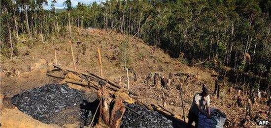 Эндемичные леса сокращаются с угрожающей скоростью при вырубках для производства древесного угля. При дефиците топливных и энергетических ресурсов в стране он остаётся единственным их источником, особенно в сельской местности. На юго-западе острова постоянно встречаются местные жители, продающие вдоль дорог кучки угля, которые пополняются за счёт уничтожения окрестных лесов (рис. 9).
