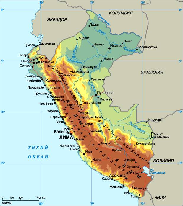 Рис. 1. Физическая карта Республики Перу