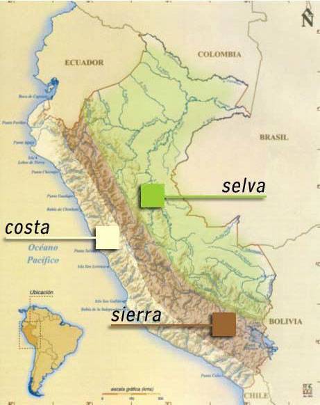 На территории Перу различия в рельефе и климате значительны. Всю страну можно разделить на три основных физико-географических региона: