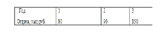 Станок стоит 200 тыс. руб. и будет использоваться в течение 3 лет, после чего подлежит списанию и продаже. По оценке предпринимателя, ожидаемая отдача от станка по годам составит:
