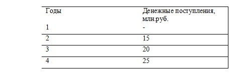 На строительство нового цеха по выпуску продукции, пользующейся спросом, предприятие израсходовало 30 млн. руб. В результате этого чистый денежный поток за расчетный период по анализируемым годам составит