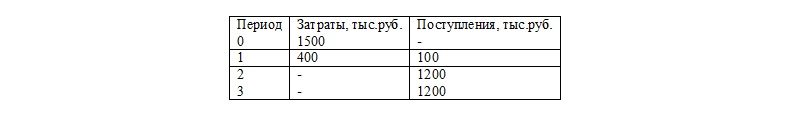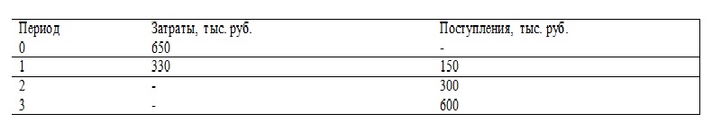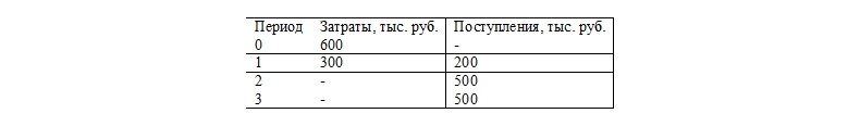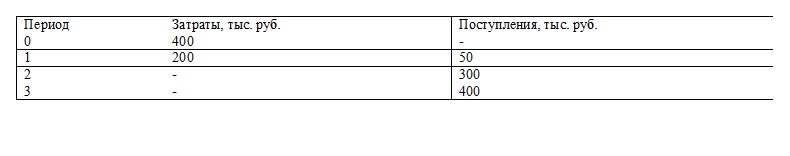 Пусть имеется проект со следующими потоками денег: