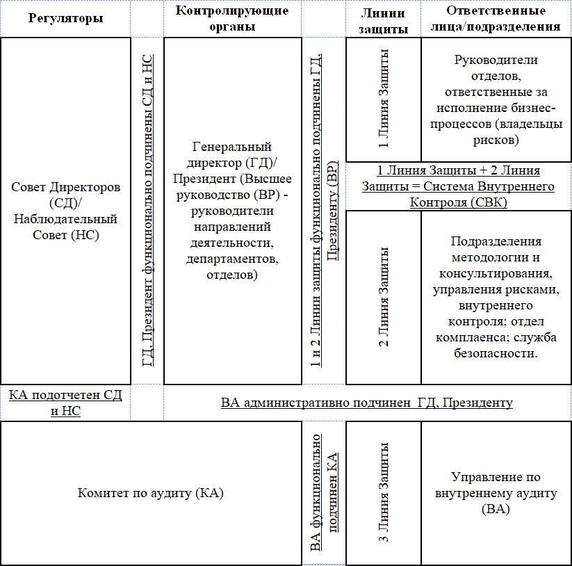 Отмечу, что по существу, первые две линии защиты могут рассматриваться, как полноценная система внутреннего контроля (на практике принято использовать аббревиатуру – СВК).