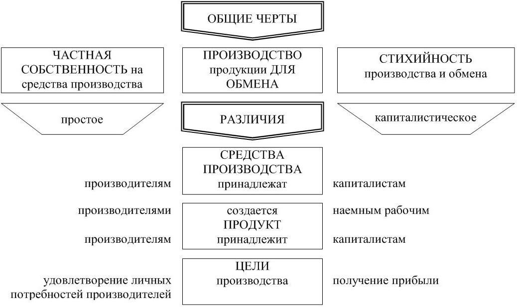 Рисунок 2 – Сравнительная характеристика простого и капиталистического товарного производства