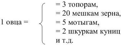 Обмен товаров на ранней ступени развития товарного производства, в условиях первобытнообщинного строя, имел случайный характер и совершался путем непосредственного обмена одной вещи па другую. Лишь в исключительных случаях продукты труда становились товарами, и тогда их стоимость случайно выражалась в какой-либо потребительной стоимости. Этой начальной ступени развития обмена соответствует простая, единичная или случайная форма стоимости, согласно которой обмен товаров совершался по формуле: Х товара А. = У товара Б например, 1 овца = 20 мешкам зерна.