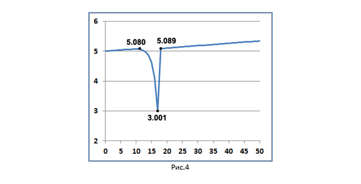 Еще одна характерная черта всех просадок для одного и того же графика состоит в том, что все экспоненты во всех просадках одинаковы. Изгибы графика при просадках не отличаются друг от друга. Просадки отличаются друг от друга только своей глубиной и тем местом, где они начались.