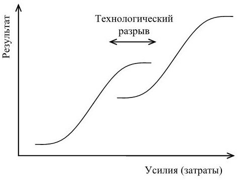 Технологический разрыв – это период перехода от одной группы продуктов или процессов к другой, момент, когда одна технология замещает другую (рис. 5.2).