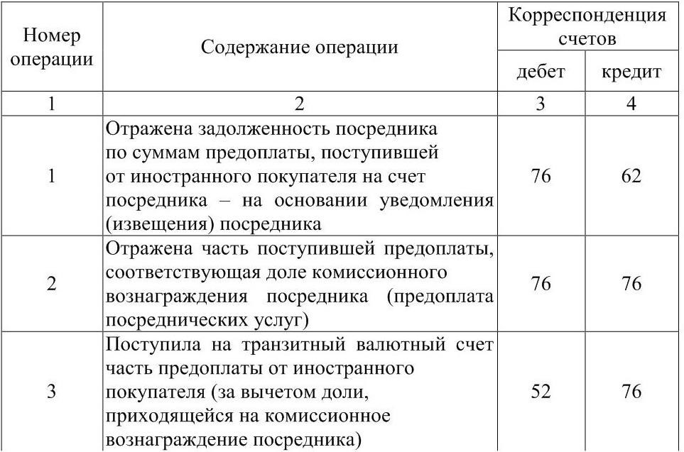 Если же посредник участвует в расчетах, сумма причитающегося ему вознаграждения автоматически уменьшает его задолженность по перечислению средств, полученных от иностранного покупателя.