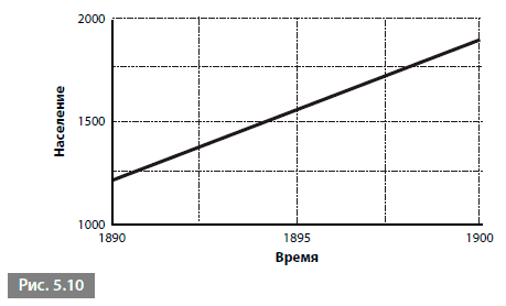 Одно маленькое предупреждение, касающееся выявления экспоненциального роста из данных временного ряда и соответствующего графика. Взгляните на график на рис. 5.10, где показан рост населения небольшого городка в конце 1800-х гг.