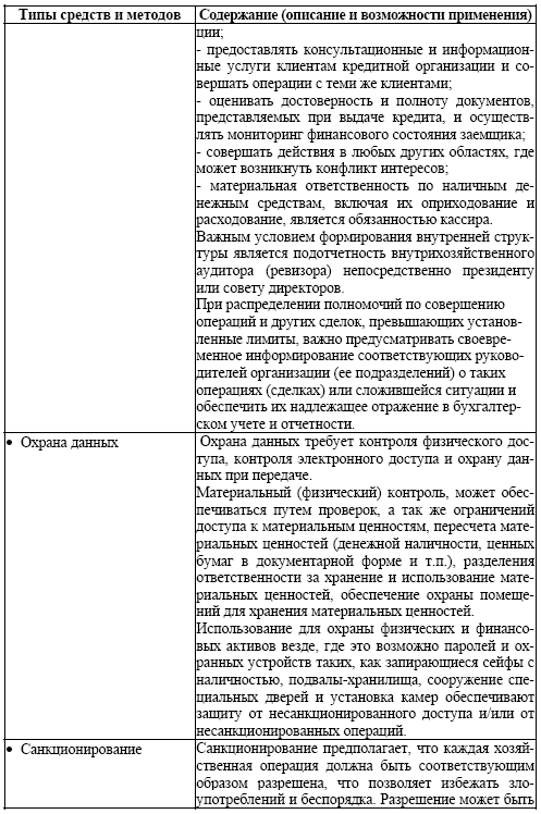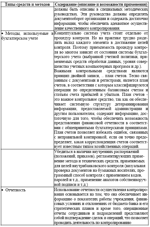 Для того, чтобы осуществить эффективный подбор и встраивание контролирования в технологический банковский процесс необходимо обладать достаточно широким набором различных средств и методов контроля, пригодных для применения в определенной контрольной ситуации и четко представлять их назначение с точки зрения выполняемых функций в контроле и потенциального результата.