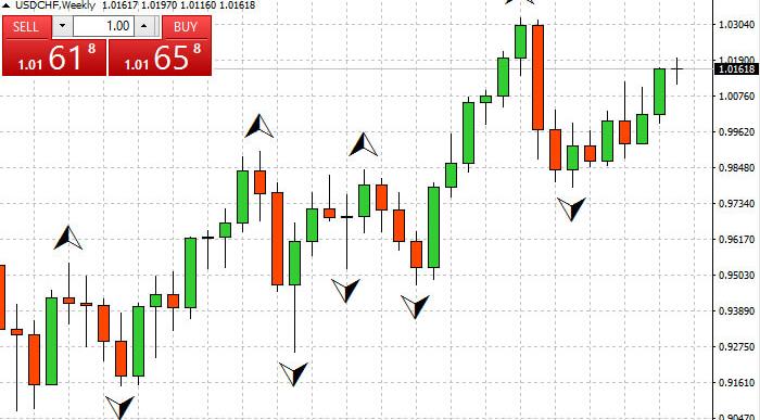• Одним из способов торговли с помощью фракталов является открытие позиции во внешнем направлении от фрактальной точки каждый раз, когда рынок превышает внешний крайний максимум восходящего фрактала или опускается ниже минимума нисходящего фрактала.