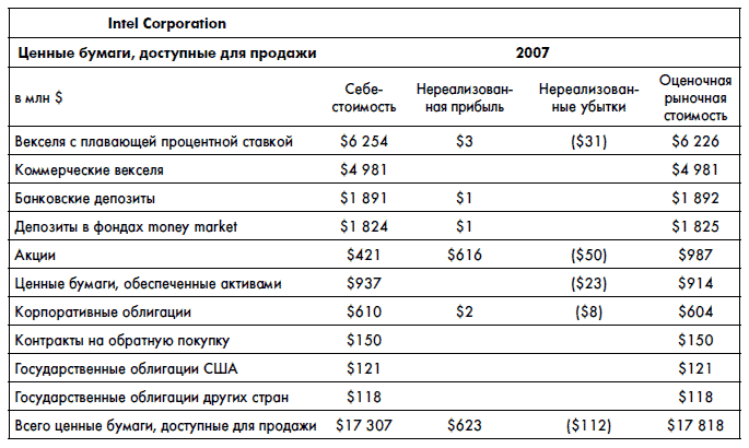 Обратите внимание, что компания Intel классифицирует все свои краткосрочные бумаги как финансовые активы, доступные для продажи, не используя остальные категории.