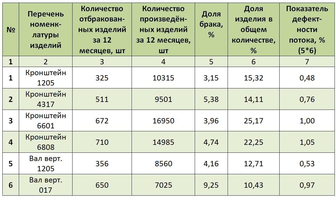 Критерием отбора изделий в приведённом способе выбора выступает произведение доли дефектных изделий по каждому изделию, либо по семейству продуктов и доля каждого изделия в общем количестве произведённых изделий во всей номенклатуре. Остаётся надеяться, что данные по дефектности являются достоверными, на чём хотелось бы сфокусировать ваше внимание. Используйте только проверенную информацию. А известно, что чем ближе к месту возникновения дефекта взята информация, тем она точнее. Не стоит обманывать самих себя.