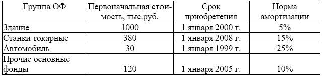 • стоимость ОПФ на начало года – 9100 тыс. руб.
