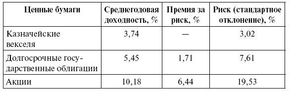 Приведенные данные подтверждают логику зависимости между риском и доходностью и соответствуют традиционной точке зрения, которая относит финансовые инструменты либо к низкодоходным и низкорисковым, либо, наоборот, к инструментам, обладающим большими возможностями получения дохода, но являющимися и более рискованными. В классической теории инвестирования акции рассматриваются как рискованные вложения, которые могут принести и высокий доход, и существенные потери. Облигации считаются значительно менее рискованным объектом для инвестиций. Это традиционная точка зрения на выбор объектов инвестирования. Она вполне оправдана при инвестировании средств на короткий срок.