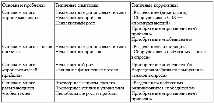 Сбалансированный портфель СЗХ должен содержать в основном «победителей» и развивающихся «победителей», небольшое количество «производителей прибыли» и немного малых «знаков вопроса», потенциально способных перерасти в «победителей».