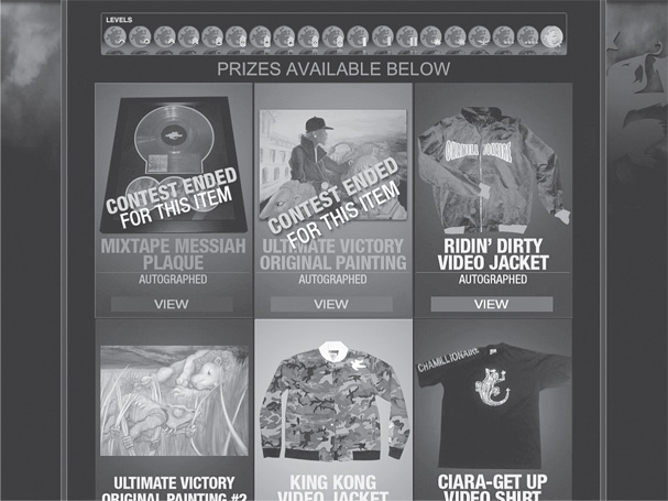 Рис. 2.2. Обладатель Grammy, певец и исполнитель Chamillionaire использует фанатский сайт для увеличения вовлеченности с помощью игрового механизма, позволяющего участникам сообщества обменивать очки на призы