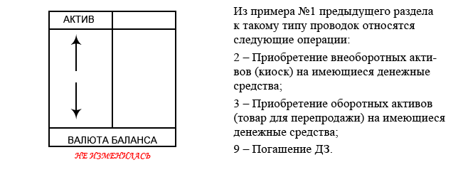 3. Изменению подвержены только показатели актива, при этом валюта баланса сохраняется в неизменной величине. Схематично, это выглядит так: