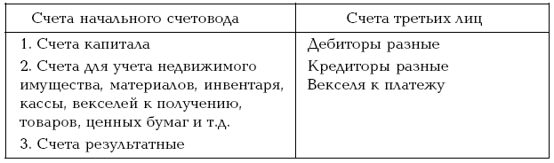 • счета делятся на два ряда: счета начального счетовода и счета третьих лиц;