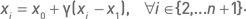 1. Выбираются n + 1 точка начального симплекса x1, x2 … xn+1. Это могут быть любые точки, не принадлежащие n-мерной гиперплоскости. В двумерном случае, когда симплекс является треугольником, достаточно, чтобы три точки не лежали на одной прямой.