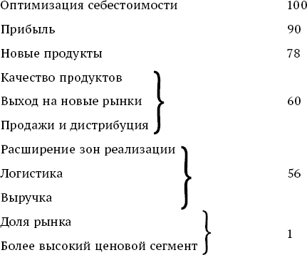Кроме экономических, у организации могут быть политические, социальные цели (в частности, суммы, расходуемые на благотворительность, участие в программах по ликвидации болезней или неблагоприятных социальных явлений). Анализ опроса полутора тысяч американских компаний показал следующую ранжировку целей и их значения в деятельности компании: рентабельность на среднем и выше среднего уровне – 89 % числа опрошенных, рост выпуска продукции и реализации товара – 82, увеличение доли рынка – 66, социальная ответственность – 65, благосостояние коллектива – 62, качество продуктов и услуг – 60. Показатели качества деятельности – производительность, развитие системы менеджмента, финансовая и ресурсовая стабильность – заняли более скромные места (50–33 %). Необходимо иметь в виду, что компании ставили не одну, а несколько целей.