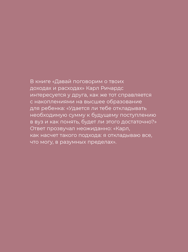Две-три подобные задачи – и вот вам жизнеспособный финансовый план. Несколько пунктов, посильный размер вложений и доля оптимизма. А фокус переместим с планирования на действия – просто делайте «все возможное в разумных пределах».