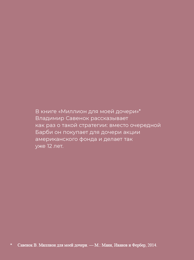 ? Лере будет 16, и ей не помешает некая сумма, которую можно будет вложить в образование. Будет ли это российский вуз, или репетиторы для подготовки к ЕГЭ, или возможность поехать на стажировку за границу – да что угодно! Помню себя в 16 лет – любая сумма была бы кстати.