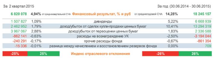 В составе квартальной отчетности по фондам мы выводим на главную страницу сводную информацию об итоговом результате и его составляющих на квартальном и годовом интервале.