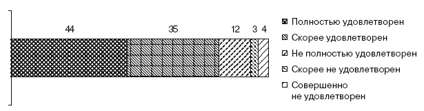 Для проведения диагностики системы соподчинения и эффективности управления мы сначала выяснили отношение подчиненных к начальству и начальства к подчиненным. Далее мы путем ранжирования оценки критериев управления выстроили портрет идеального руководителя (подчиненного), с точки зрения персонала, а затем оценили соответствие реальных начальников (подчиненных) этой идеальной модели. Опросы показали, что большинство респондентов удовлетворены нынешним руководителем (лишь около 10 % из них не полностью довольны руководителем) (рис. 2.23).