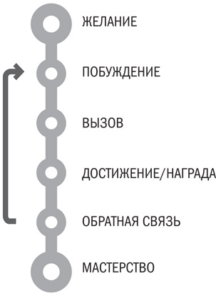 Рис. 1.1. Чтобы подтолкнуть пользователей стремиться к мастерству, вам нужно создать игровую систему, в которой им будет нужно пройти эти шесть шагов