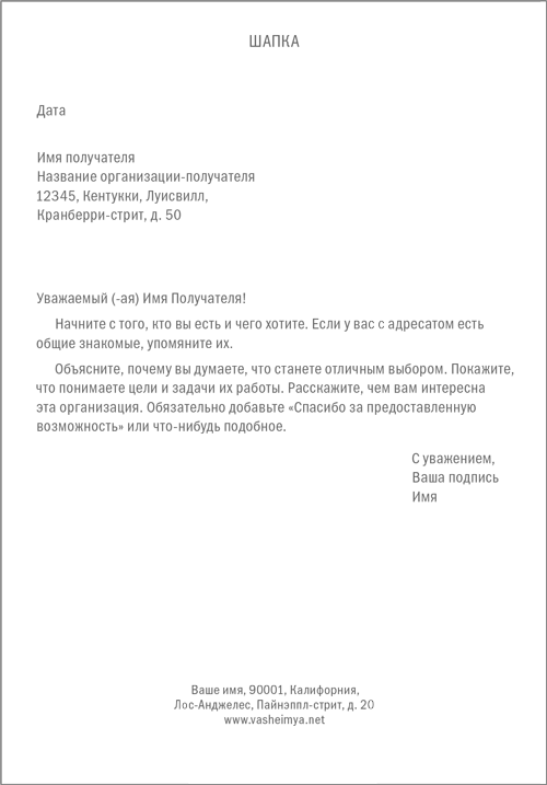 Если вы рассылаете несколько заявок одновременно, заполните поле обратного адреса: укажите название организации и ее адрес. Так вы поймете, кто именно из адресатов возвращает вам материалы (если они вдруг забудут приложить письмо).