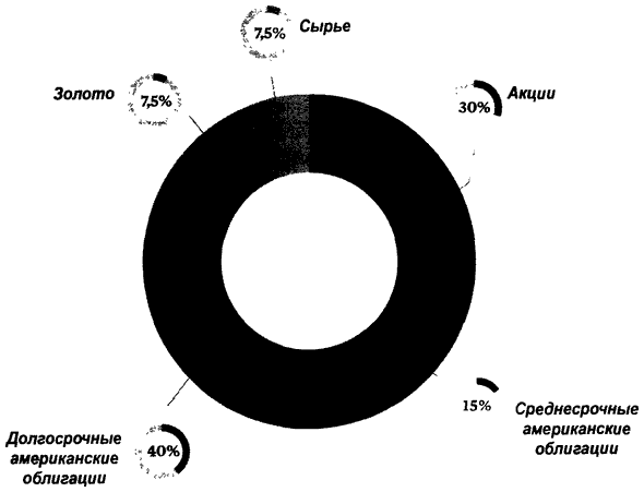 Мне это было понятно, и я попросил его изложить упрощенную версию: «Можете ли вы дать раскладку по процентам, которую без всяких рычагов сможет использовать рядовой вкладчик, чтобы получить максимально возможный доход при минимальном риске? Я знаю, что это будет не самый совершенный вариант, потому что он создается буквально на ходу. Но ваша прикидка в любом случае будет лучше, чем план, который сможет самостоятельно разработать обычный инвестор. Предложите версию всесезонного портфеля, которую читатель сможет применить самостоятельно или с помощью своего финансового консультанта».