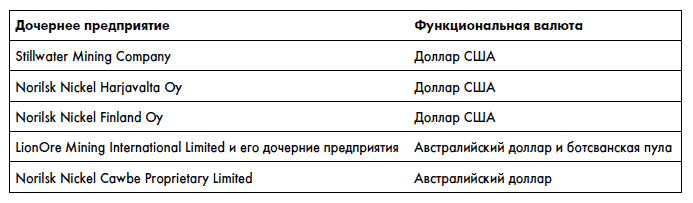 В качестве функциональней валюты всех иностранных дочерних предприятий Группы был определен российский рубль («руб.» или «рубль»), за исключением следующих дочерних предприятий, ввиду значительной степени их автономности: