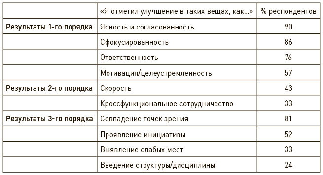 Одной из таких организаций была глобальная технологическая компании, о которой шла речь в главе 1. Примерно через два года после осуществления кардинальных изменений я опросил руководителей среднего и высшего звена, принимавших участие во внедрении принципов направленного оппортунизма.